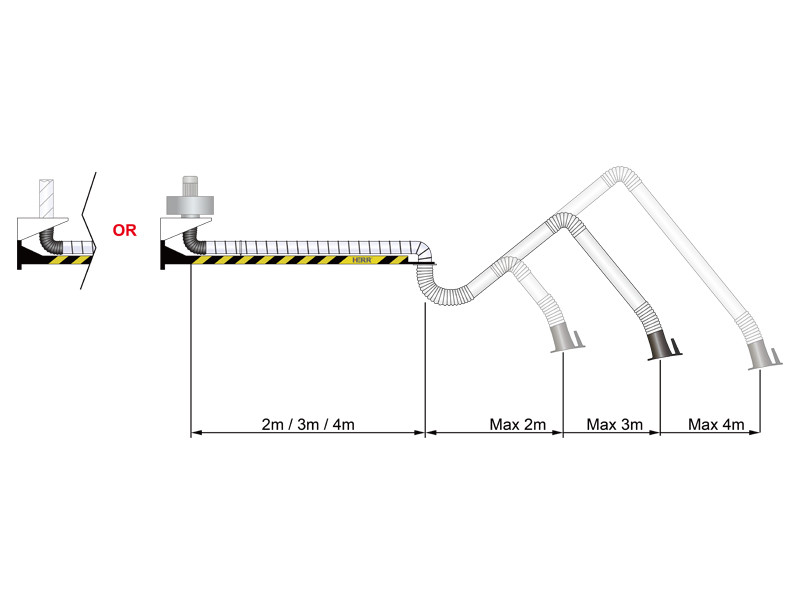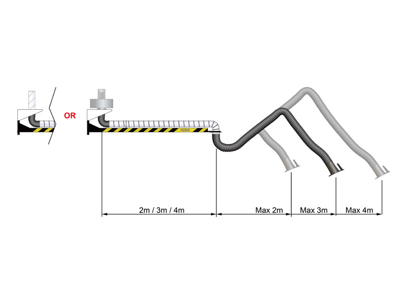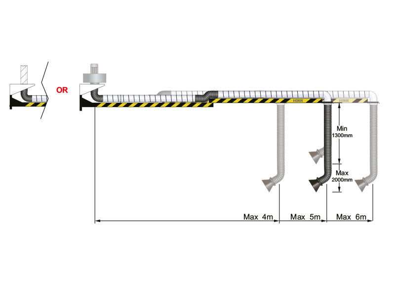為了幫助您解決長距離問題,您可以使用剛性、柔性和伸縮式抽油臂,吸氣臂可以通過安裝在墻上或柱子上的吊桿來延伸。吸氣臂有一個(gè)或兩個(gè)接頭。